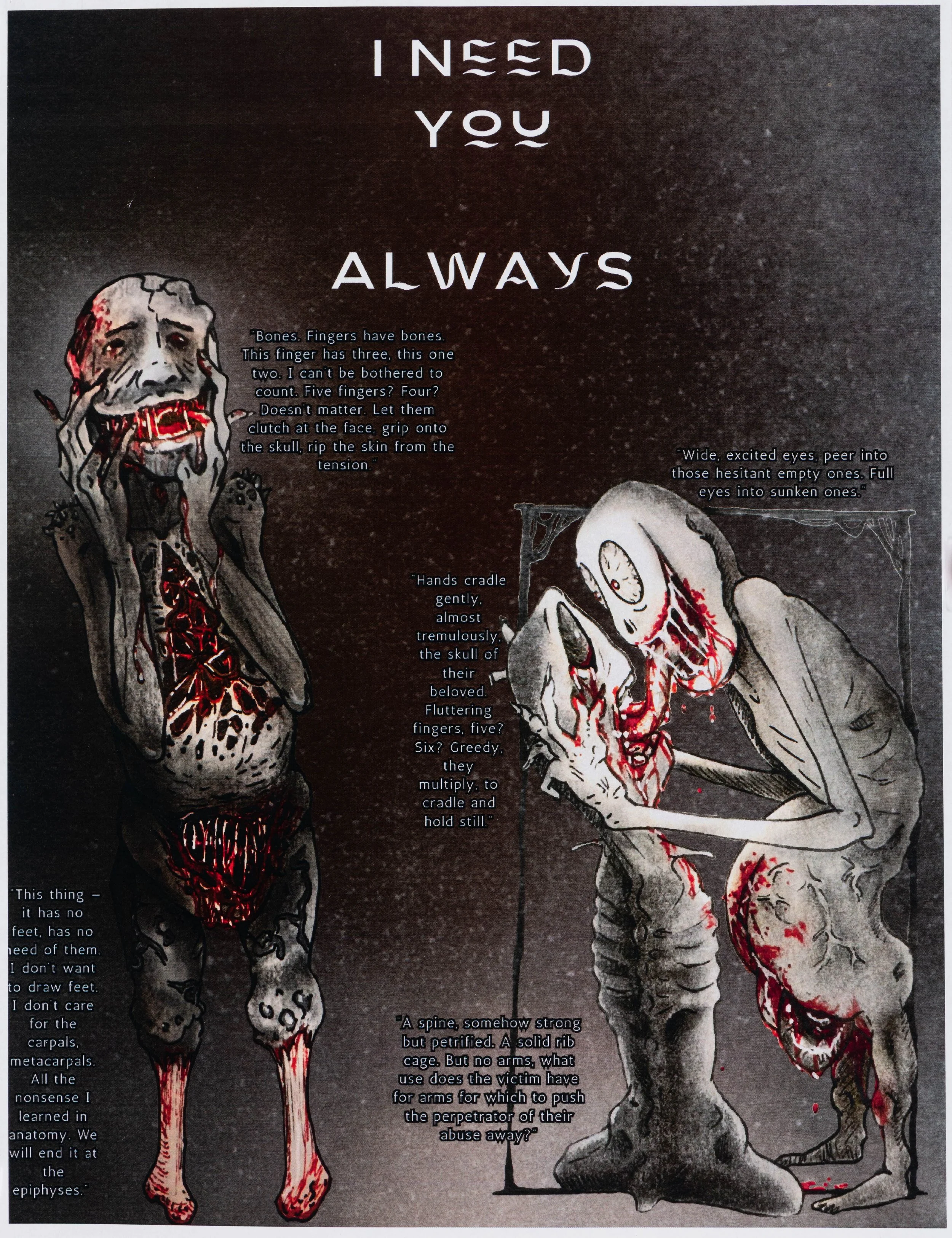 The following projects were created in Sowon Park’s class "Trauma and Somatic Reading." The course starts with a broad discussion of trauma studies across neural, somatic and socio-political domains. It pays particular attention to how writers, philosophers, neuroscientists and psychologists shifted away from thinking of trauma as individual experiences of exception disaster to seeing it as a generalized, everyday condition of modern society. Set texts are drawn mainly from modern literature, all of which engages with disturbing material. In place of the standard trigger warning, the course offers an opportunity to practice trauma-informed somatic experiencing techniques.